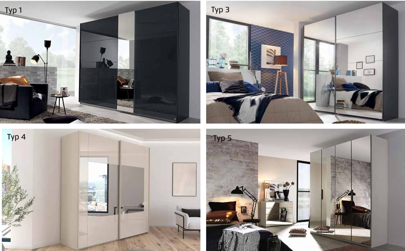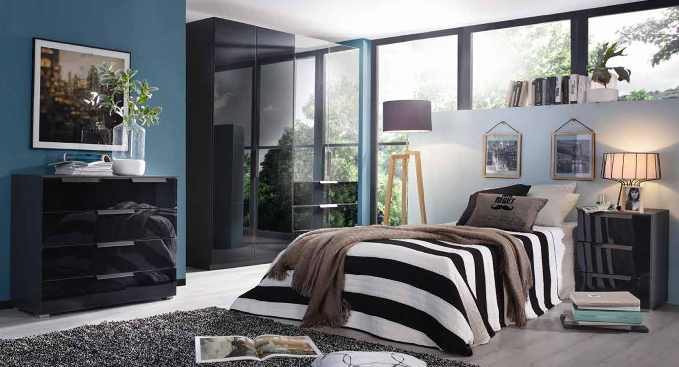 German engineering for your bedroom...The Miramar wardrobe range. Available in five variations as explained below. No matter what you are looking for, this range has it. One of the higher quality ranges boasting all glass fronts, soft closing mechanisms on all doors and drawers, a complete colour choice and two shelves with one hanging rail in each compartment with the shelves being smoothened and rounded for an elegant soft interior finish.